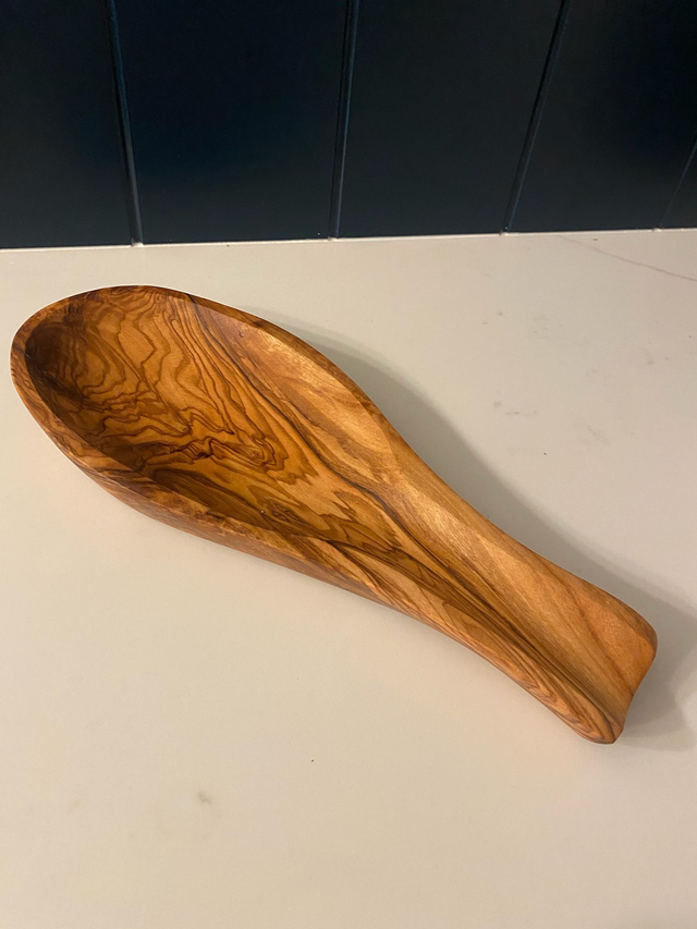 The perfect companion to any professional or domestic chef! Made from 100% solid olive wood this beautiful spoon rest is generous enough to hold all wooden spoon sizes. This also includes one of our olive wood spoons.
