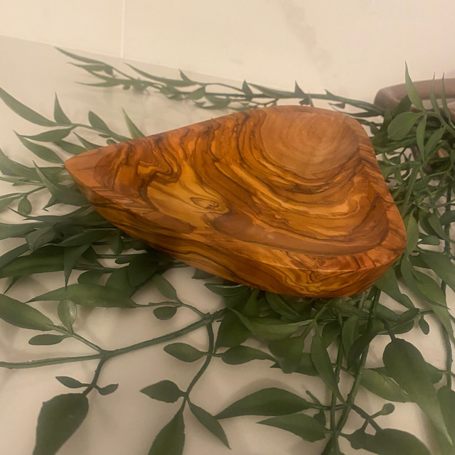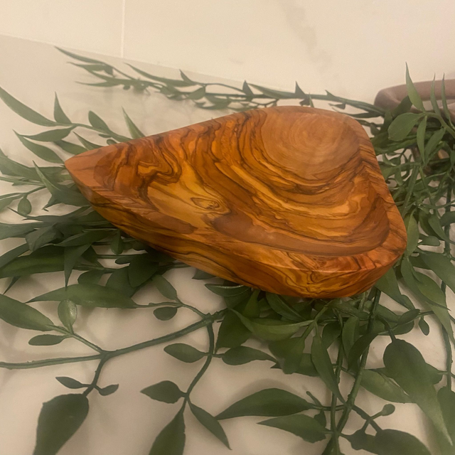 Celebrate natural beauty and heartfelt craftsmanship with this charming heart-shaped olive wood dish. Hand-carved from sustainably sourced olive wood, each dish features stunning grain patterns, warm honey tones, and its own unique character — no two are ever the same.