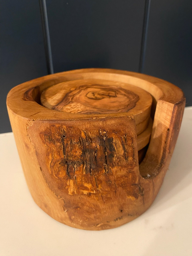 Elevate your table setting with our Artisan Olive Wood Coasters. Crafted from eco-friendly olive wood, these coasters combine beauty and function with unique grain patterns and natural anti-bacterial properties. Each set arrives in a charming gift bag, making it a perfect gift for home decor enthusiasts.