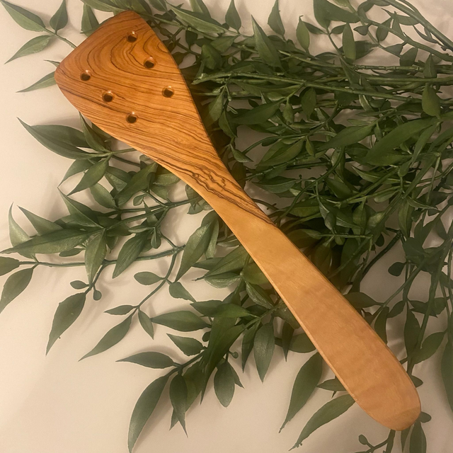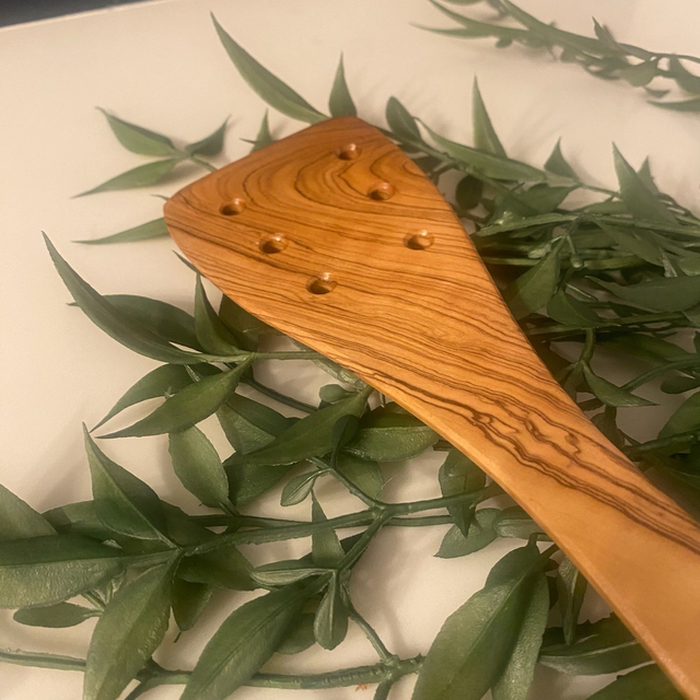 Stir up your culinary creations with our Handcrafted Olive Wood Stirring Spatula. Made from sustainably harvested olive wood, this spoon combines