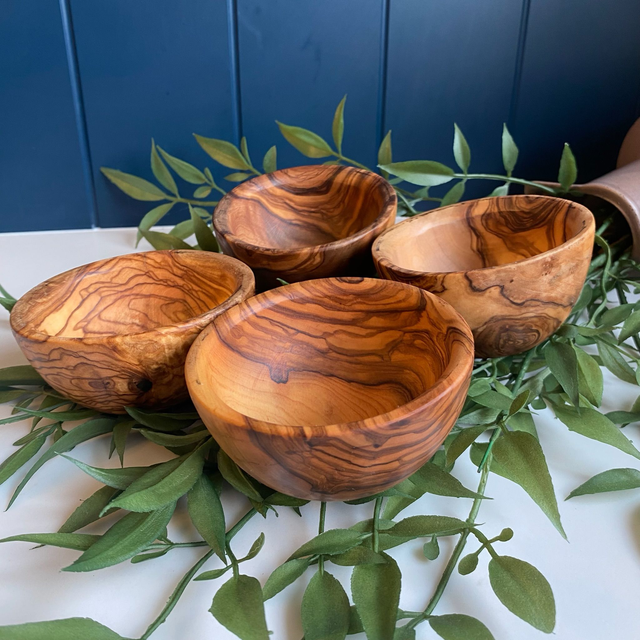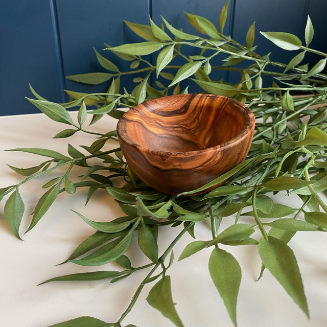 Chunky olive wood rounded shaped dish perfect for keeping small items in the rounded dish. These are handmade out of the highest quality olive wood that is left to try naturally in the Mediterranean sunshine for 30 days before being hand made.