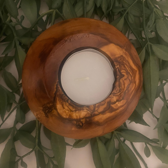 Small Olive Wood Candle Holder – Handcrafted Natural Wooden Tea light Holder