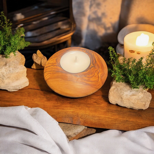 Because olive wood is naturally durable and wonderfully unique, every candle holder is truly one-of-a-kind — no two will ever look exactly the same.